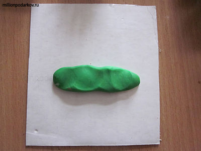 Приклеиваем к картону кусочек зеленого пластилина