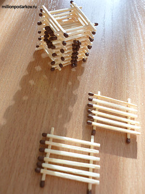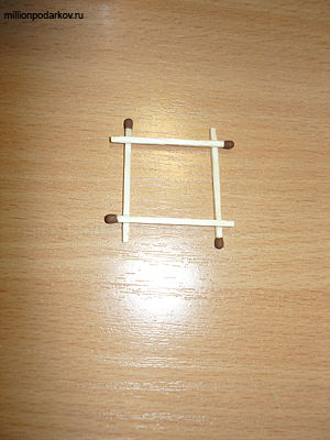 Складываем спички друг на друга, так чтобы получился четырех угольник. Затем капаем клей и склеиваем конструкцию.