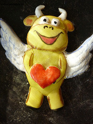 Сегодня мы займемся изготовлением поделки из теста бык ангел. Такую поделку можно подарить в качестве сувенира на День святого Валентина, тому кто тебе нравится, но на тебя обижен. В сердечке можно написать: "Не быкуй, я тебя люблю!"