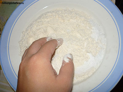 Смешиваем муку и соль "Экстра" добавляем немного воды