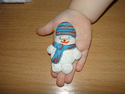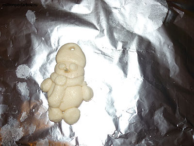 Поделки из теста мастер класс "Детские украшения на ёлку в виде снеговика"