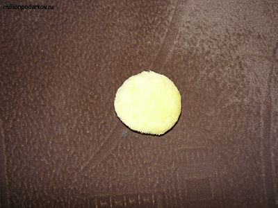 Вырезаем из ткани 2 одинаковых круга. Сшиваем их и выворачиваем на правую сторону. Затем набиваем синтепоном.