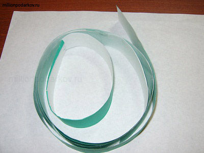 Для елки нам понадобятся полоски зеленой цветной бумаги различной длины. Нарежьте полоски одинаковой длины и склейте их между собой, чтобы получилась длинная лента. Затем эту ленту нарежьте на полоски. Делайте по две полоски одинаковой длины, каждую следующую пару делайте длиннее на 2-3 сантиметра, чтобы елка в дальнейшем книзу расширялась.