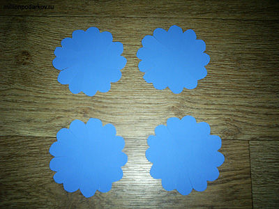 Вырезаем волнистые размеченные края и делаем еще три такие заготовки.