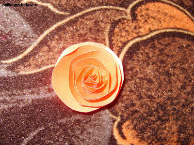 Из заготовки для цветка теперь делаем сам цветок. Для этого скручиваем ленточку и получаем цветок, закрепляем клеем.