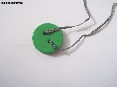 В крышке бутылки сделайте 2 отверстия и проденьте шнурок.