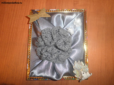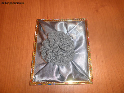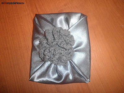 В центре пришиваем связаный цветочек, от которого идут красиво складки
