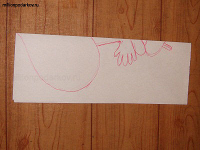 Берем один альбомный листок. Складываем его пополам вдоль. Рисуем на листе основу для будущей поделки на День Святого Валентина, как показано на картинке.