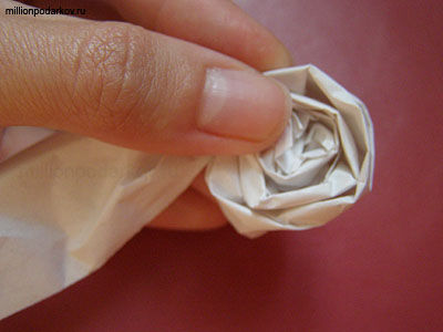 Произвольно заворачиваем нашу сердцевину формируя лепестки розы