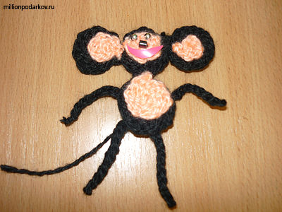 Сшиваем части тела обезьяны. Затем пришиваем глазки и ротик. Обезьяна готова!