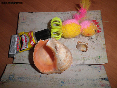 Поделки с ракушками «Петушок на море»
