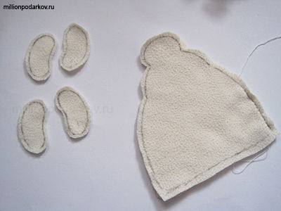 Кроим детали из ткани. 2 детали тела, 2 детали руки и еще 2 руки в зеркальном отображении.Сшиваем детали не до конца.
