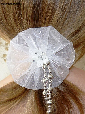 Поделки своими руками из ткани могут пригодится в повседневной жизни. Вот такую резиночку для волос из тафты я сшила для своей дочери.