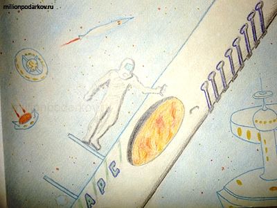 Рисуем сюжет из жизни космонавтов "Выход на орбиту космической станции". На обратной стороне пишем поздравление посвященное Дню Космонавтики. Открытка готова!