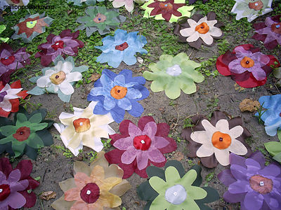 Сделав много подобных цветов, можно украсить ими участок земли.