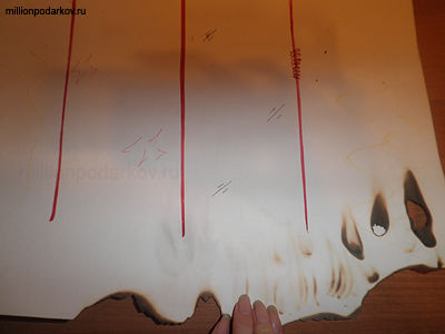 Ватман будет смотреться более эффектно, если его с нижнего края, поджигая зажигалкой, закруглить.
