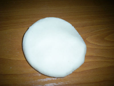 Для начала подготовим тесто из муки, соли и воды, взяв их в пропорции 3:2:1. Если тесто получится жидким, добавьте еще муки. Если оно будет крошиться и разламываться в руках, то разведите его водой. В результате у вас должна получиться пластичное соленое тесто, поделки из которого выйдут красивыми, а мельчайшие детали на них будут хорошо видны. В процессе вымешивания теста можете добавить в него немного разведенного в воде пищевого красителя для получения нужного цвета массы. В данной поделке мы будем использовать красители для цветочков, а травку покрасим акварельными красками. Хорошо вымешивайте тесто.