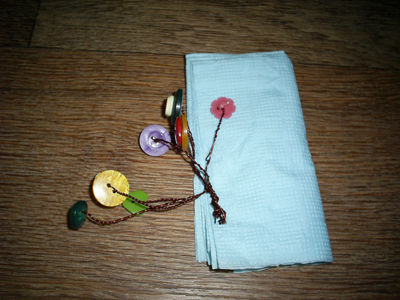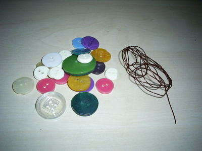 Для поделки подготовьте разнообразные пуговицы, проволоку и ножницы. Также нам понадобятся салфетки под тон будущего аксессуара.