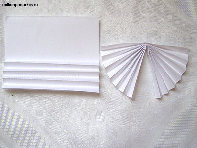 Берем лист бумаги, складываем его гармошкой, перегибаем по средине, склеиваем края. После чего приклеиваем еще одну часть, чтоб получился круг.