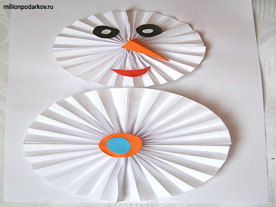 Простая поделка из бумаги для дошкольников "Снеговик"