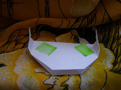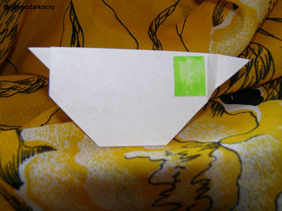 Переворачиваем нашу заготовку и делаем двойные загибы уголков как показано на фото