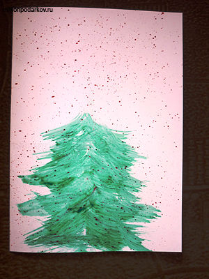 Зубной щеткой делаем брызги и рисуем ёлочку.
