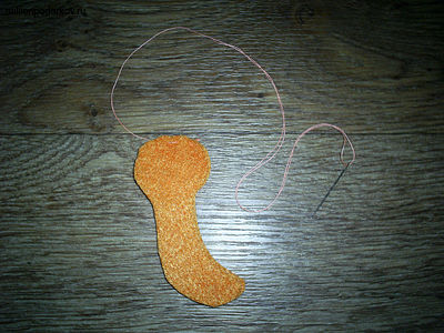 Из фетра вырезаем две детали туловища бабочки и сшиваем их иголкой с ниткой швом «вперед иголка».