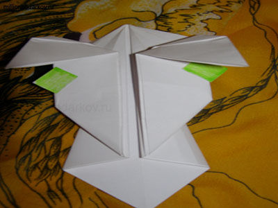 Загибаем получившиеся крылышки вниз