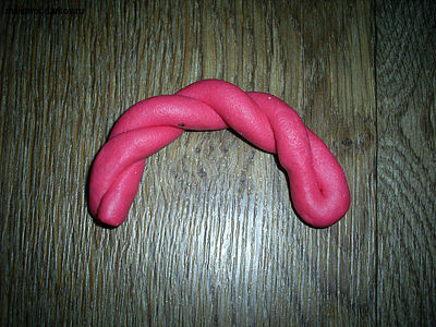 Для ручки также скатайте две колбаски, сверните их по спирали. Выгните ручку по ширине коробочки.