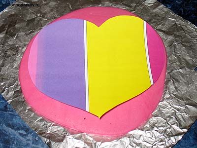 Раскатать тесто толщиной 4-5 мм. По шаблону вырезать сердце нужного размера и формы.