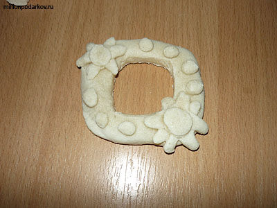 Лепим из теста фото рамку. Затем сушим изделие в духовке при температуре 50 градусов.