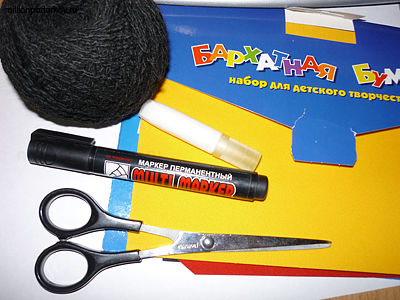 Для того, чтобы сделать цифры из бумаги вам потребуется бархатная бумага, белая бумага, маркер черного цвета, ножницы, клей ПВА, нитки для вязания.