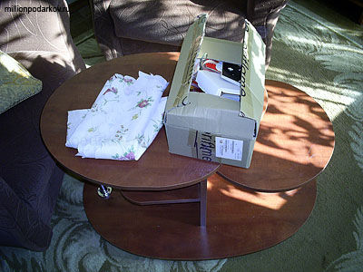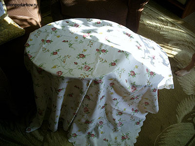 Накроем наш столик симпатичной скатертью.