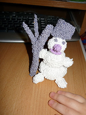 С детьми в преддверие Нового года можно изготовить зимние поделки из пластилина. Если вы хотите, чтобы ваш ребенок не замарал руки, то вместо простого пластилина советую использовать шариковый пластилин. Мы с дочкой лепили свою поделку из шарикового пластилина.