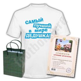 Необычный подарок дедушке - Вы можете легко вписать имя дедушки в грамоту и подарок станет именным!Внимание! Рисунок на грамоте - может не совпадать с фото! Текст совпадает.Модель футболки на фото: Футболка мужская (классическая). Материал: джерси, хлопок 100%. Футболка без боковых швов. Плотность 150гр. Размеры S(46)-M(48)-L(50)-XL(52)-XXL(54)-XXXL(56)Способ нанесения: термоаппликация (флекс). Стирать в стиральной машине при t до 40С. Перед стиркой вывернуть наизнанку. По изображению не гладить!Размер грамоты: 21 × 29,5 смМатериал:плотная бумага