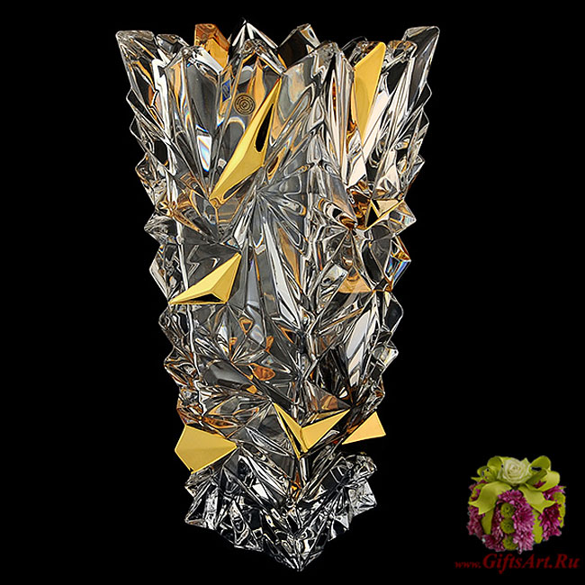 Ваза для цветов хрустальная с золотым декором Ледник Высота 31 см Ручная работа Чехия