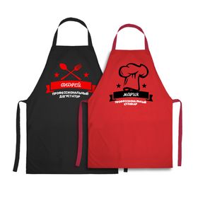 Добавьте любые имена. В наборе два фартука. Размер 52х65 см. Печать высокого качества, можно стирать. Универсальный размер (сзади завязывается на пояс).