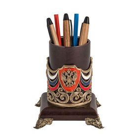 Подставка для письменных принадлежностей сделана из кожи и декорирована подстаканником ручной работы из бронзы... Товара нет в наличии (К сожалению, магазин который раньше продавал этот товар сейчас его не продает)