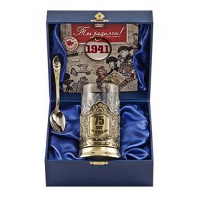 Набор для чая "С днем Победы!" с DVD-диском (латунь)