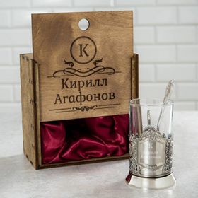 Красивый позолоченный подстаканник в подарочной коробке с гравировкой
