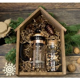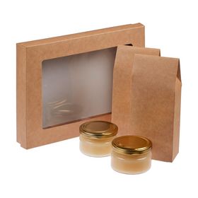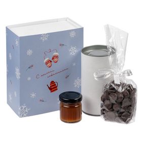 Состав набора: Коробка картонная с ложементом Сани белые Чай фруктовый в пакете, 70 гр Мед в ассортименте, 120 гр Свеча-шишка малая, натуральный воск Миндаль, 70 гр Шубер