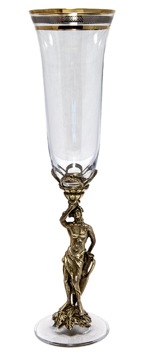 Материал: богемское стекло с золотым декорированием (отделка сеточка), бронза. Ручная работа.Размер бокала для шампанского: высота - 21,5 см, объем - 190 млРазмер футляра из дизайнерского картона: 33*14*9 см