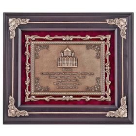 Материал: деревянный багет, стекло, объемный медный шильд, выполненный в технике гальванопластики, холодные цветные эмали. Фурнитура- латунь. Внутри отделана бархатом и декорирована металлизированными наклейками, также возможно их отсутствие.Размер: 34*28*8 см