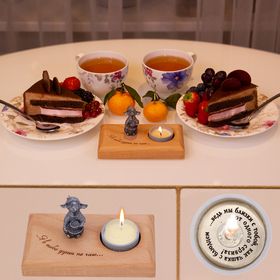 Свеча с секретом. Иногда ожидание так же сладко, как и само сообщение.Когда воск свечи тает, на дне подсвечника медленно раскрывается тайное послание.Появление надписи примерно через 20 мин.Полностью надпись открывается примерно через 30 мин.Общее время горения свечи около 2-х часов. Когда тайна разгадана, подсвечник можно использовать под стандартные чайные свечи, а первую сохранить на память.В помощь дарителю, свеча комплектуется подсказкой — картонным диском, нанизанным на фитиль. На нем надпись тайного послания под слоем парафина. Не забудьте убрать подсказку в момент дарения. По вашему заказу нанесём любые надписи на подсвечник и на дно чаши свечи.Услуга бесплатна, срок исполнения — один рабочий день.Желаемые надписи можно написать при оформлении в комментариях к заказу. Деревянный подсвечник из бука имеет гладкую поверхность. Для создания грязеотталкивающих свойств и сохранения уникальных свойств дерева – запаха, уюта и тепла, подсвечник покрыт натуральным маслом. Лазерная гравировка текста.Ножки изготовлены методом точного художественного литья из сплава цветных металлов МНЦ-15-20 нейзильбера ("новое серебро") — среднее между серебром и мельхиором.Размер подсвечника: 8*8*1,5 см.Чаша подсвечника — акрил с надписью «Тайное послание».Размер чаши: диаметр 3,5 см, высота 1,8 см.Парафин — очищенный, с натуральным экстрактом зеленого чая.Фитиль — из натурального хлопка, что делает пламя свечи чистым и ровным.Шильд на дне свечи — металл с гравировкой текста послания.Подарочная коробка- бонбоньерка.Размер коробки: 8*8*9 см.Надписи на коробке:«Эмоции в подарок...»«Когда мы начинаем окружать себя красивыми вещами и добрыми мыслями, то жизнь начинает меняться в лучшую сторону...»«Даже самый маленький подарок становится великим даром, если ты вручаешь его с любовью...»«Главные вещи в нашей жизни - не вещи...»