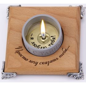 Свеча с секретом. Иногда ожидание так же сладко, как и само сообщение.Когда воск свечи тает, на дне подсвечника медленно раскрывается тайное послание: "...да, со мной сложно, но без меня невозможно!".Появление надписи примерно через 20 мин.Полностью надпись открывается примерно через 30 мин.Общее время горения свечи около 2-х часов. Когда тайна разгадана, подсвечник можно использовать под стандартные чайные свечи, а первую сохранить на память.В помощь дарителю, свеча комплектуется подсказкой — картонным диском, нанизанным на фитиль. На нем надпись тайного послания под слоем парафина. Не забудьте убрать подсказку в момент дарения. По вашему заказу нанесём любые надписи на подсвечник и на дно чаши свечи.Услуга бесплатна, срок исполнения — один рабочий день.Желаемые надписи можно написать при оформлении в комментариях к заказу. Деревянный подсвечник из бука имеет гладкую поверхность. Для создания грязеотталкивающих свойств и сохранения уникальных свойств дерева – запаха, уюта и тепла, подсвечник покрыт натуральным маслом. Лазерная гравировка текста.Фигурка изготовлена методом точного художественного литья из сплава цветных металлов МНЦ-15-20 нейзильбера ("новое серебро") — среднее между серебром и мельхиором.Размер подсвечника: 13*7*2 см.Чаша подсвечника — акрил с надписью «Тайное послание».Размер чаши: диаметр 3,5 см, высота 1,8 см.Парафин — очищенный, с натуральным экстрактом зеленого чая.Фитиль — из натурального хлопка, что делает пламя свечи чистым и ровным.Шильд на дне свечи — металл с гравировкой текста послания.Общий вес: 0,2 кг.Размер подарочной коробки: 14*9,5*9 см. Надписи на упаковочной подарочной коробке: "Жгите свечи, пейте вино, кушайте из красивой посуды, обнимайтесь, целуйтесь, любите друг друга и никогда не ждите особого случая!""Человеку много тепла не надо. Можно и теплом свечи согреться.""Главное — это свет и теплота в душе и дома.""Грейте, люди, друг другу души: словом, добром, светом свечи."
