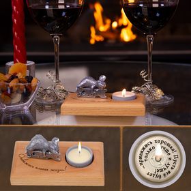 Свеча с секретом. Иногда ожидание так же сладко, как и само сообщение.Когда воск свечи тает, на дне подсвечника медленно раскрывается тайное послание:"...что никому тебя не отдам...". Появление надписи примерно через 20 мин.Полностью надпись открывается примерно через 30 мин.Общее время горения свечи около 2-х часов. Когда тайна разгадана, подсвечник можно использовать под стандартные чайные свечи, а первую сохранить на память.В помощь дарителю, свеча комплектуется подсказкой — картонным диском, нанизанным на фитиль.На нем надпись тайного послания под слоем парафина.Не забудьте убрать подсказку в момент дарения. По вашему заказу нанесём любые надписи на подсвечник и на дно чаши свечи.Услуга бесплатна, срок исполнения — один рабочий день.Желаемые надписи можно написать при оформлении в комментариях к заказу. Деревянный подсвечник из бука имеет гладкую поверхность. Для создания грязеотталкивающих свойств и сохранения уникальных свойств дерева – запаха, уюта и тепла, подсвечник покрыт натуральным маслом. Лазерная гравировка текста.Фигурка изготовлена методом точного художественного литья из сплава цветных металлов МНЦ-15-20 нейзильбера ("новое серебро") — среднее между серебром и мельхиором.Размер подсвечника: 13*7*2 см.Чаша подсвечника — акрил с надписью «Тайное послание».Размер чаши: диаметр 3,5 см, высота 1,8 см.Парафин — очищенный, с натуральным экстрактом зеленого чая.Фитиль — из натурального хлопка, что делает пламя свечи чистым и ровным.Шильд на дне свечи — металл с гравировкой текста послания.Общий вес: 0,2 кг.Размер подарочной коробки: 14*9,5*9 см. Надписи на упаковочной подарочной коробке:"Жгите свечи, пейте вино, кушайте из красивой посуды, обнимайтесь, целуйтесь, любите друг друга и никогда не ждите особого случая!""Человеку много тепла не надо. Можно и теплом свечи согреться.""Главное — это свет и теплота в душе и дома.""Грейте, люди, друг другу души: словом, добром, светом свечи."