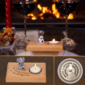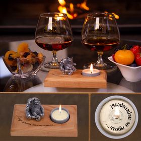 Свеча с секретом. Иногда ожидание так же сладко, как и само сообщение.Когда воск свечи тает, на дне подсвечника медленно раскрывается тайное послание:"...я люблю тебя!". Появление надписи примерно через 20 мин.Полностью надпись открывается примерно через 30 мин.Общее время горения свечи около 2-х часов. Когда тайна разгадана, подсвечник можно использовать под стандартные чайные свечи, а первую сохранить на память.В помощь дарителю, свеча комплектуется подсказкой — картонным диском, нанизанным на фитиль.На нем надпись тайного послания под слоем парафина.Не забудьте убрать подсказку в момент дарения. По вашему заказу нанесём любые надписи на подсвечник и на дно чаши свечи.Услуга бесплатна, срок исполнения — один рабочий день.Желаемые надписи можно написать при оформлении в комментариях к заказу. Деревянный подсвечник из бука имеет гладкую поверхность. Для создания грязеотталкивающих свойств и сохранения уникальных свойств дерева – запаха, уюта и тепла, подсвечник покрыт натуральным маслом. Лазерная гравировка текста.Фигурка изготовлена методом точного художественного литья из сплава цветных металлов МНЦ-15-20 нейзильбера ("новое серебро") — среднее между серебром и мельхиором.Размер подсвечника: 13*7*2 см.Чаша подсвечника — акрил с надписью «Тайное послание».Размер чаши: диаметр 3,5 см, высота 1,8 см.Парафин — очищенный, с натуральным экстрактом зеленого чая.Фитиль — из натурального хлопка, что делает пламя свечи чистым и ровным.Шильд на дне свечи — металл с гравировкой текста послания.Общий вес: 0,2 кг.Размер подарочной коробки: 14*9,5*9 см. Надписи на упаковочной подарочной коробке:"Жгите свечи, пейте вино, кушайте из красивой посуды, обнимайтесь, целуйтесь, любите друг друга и никогда не ждите особого случая!""Человеку много тепла не надо. Можно и теплом свечи согреться.""Главное — это свет и теплота в душе и дома.""Грейте, люди, друг другу души: словом, добром, светом свечи."