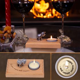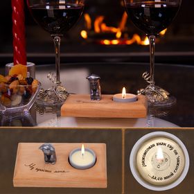 Свеча с секретом. Иногда ожидание так же сладко, как и само сообщение.Когда воск свечи тает, на дне подсвечника медленно раскрывается тайное послание:"...море по колено, любви по учши и счастье с головой!". Появление надписи примерно через 20 мин.Полностью надпись открывается примерно через 30 мин.Общее время горения свечи около 2-х часов. Когда тайна разгадана, подсвечник можно использовать под стандартные чайные свечи, а первую сохранить на память.В помощь дарителю, свеча комплектуется подсказкой — картонным диском, нанизанным на фитиль.На нем надпись тайного послания под слоем парафина.Не забудьте убрать подсказку в момент дарения. По вашему заказу нанесём любые надписи на подсвечник и на дно чаши свечи.Услуга бесплатна, срок исполнения — один рабочий день.Желаемые надписи можно написать при оформлении в комментариях к заказу. Деревянный подсвечник из бука имеет гладкую поверхность. Для создания грязеотталкивающих свойств и сохранения уникальных свойств дерева – запаха, уюта и тепла, подсвечник покрыт натуральным маслом. Лазерная гравировка текста.Фигурка изготовлена методом точного художественного литья из сплава цветных металлов МНЦ-15-20 нейзильбера ("новое серебро") — среднее между серебром и мельхиором.Размер подсвечника: 13*7*2 см.Чаша подсвечника — акрил с надписью «Тайное послание».Размер чаши: диаметр 3,5 см, высота 1,8 см.Парафин — очищенный, с натуральным экстрактом зеленого чая.Фитиль — из натурального хлопка, что делает пламя свечи чистым и ровным.Шильд на дне свечи — металл с гравировкой текста послания.Общий вес: 0,2 кг.Размер подарочной коробки: 14*9,5*9 см. Надписи на упаковочной подарочной коробке:"Жгите свечи, пейте вино, кушайте из красивой посуды, обнимайтесь, целуйтесь, любите друг друга и никогда не ждите особого случая!""Человеку много тепла не надо. Можно и теплом свечи согреться.""Главное — это свет и теплота в душе и дома.""Грейте, люди, друг другу души: словом, добром, светом свечи."