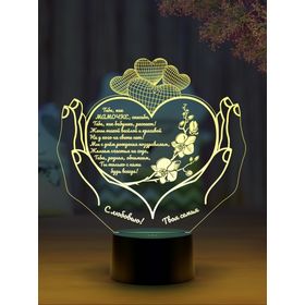 3D светильник С Вашим текстом «Сердце - Спасибо, мама!»