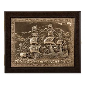 Ключница настенная из кожи "Газ и нефть России" (орех, венге, беж) арт. КЛКШВ-36